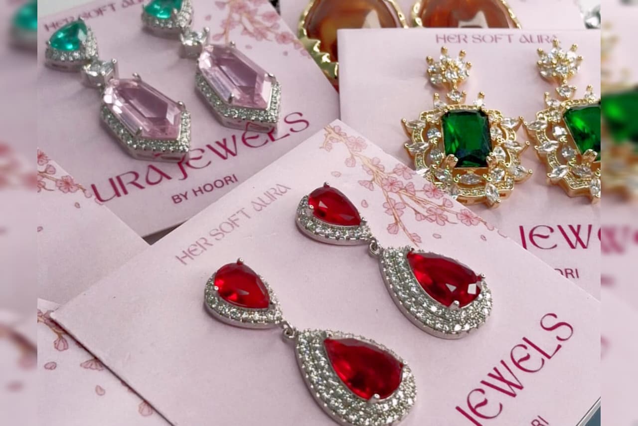 Aura Jewels by hoori Green With Light Blue zirconia Earrings