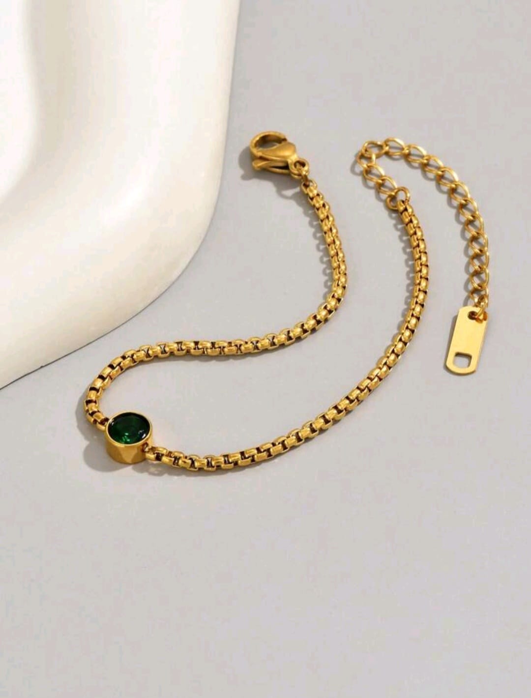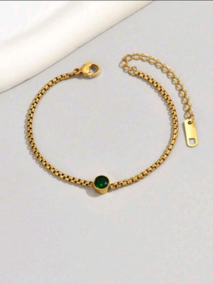 Emerald green cubic zirconia venitian box chain bracelet 18K gold-plated stainless steel