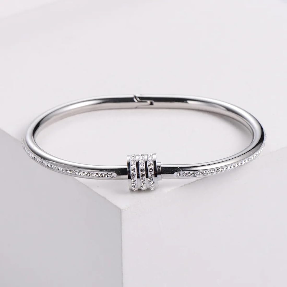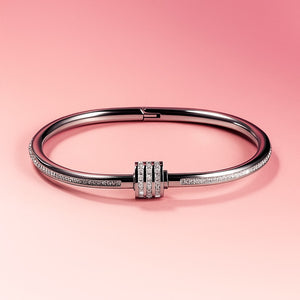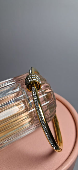 Timeless Design: A minimalist yet symbolic gold-plated bangle bracelet with cubic zirconia paving. that complements any outfit.